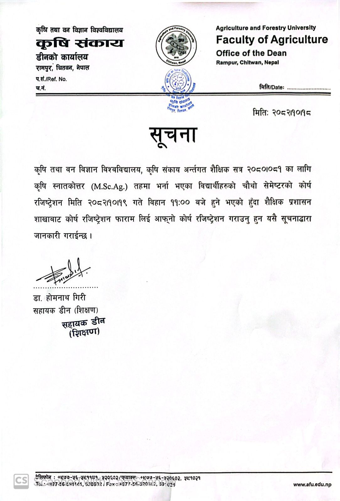 Course registration notice-m.sc.ag 4th semester academic year 2080/081