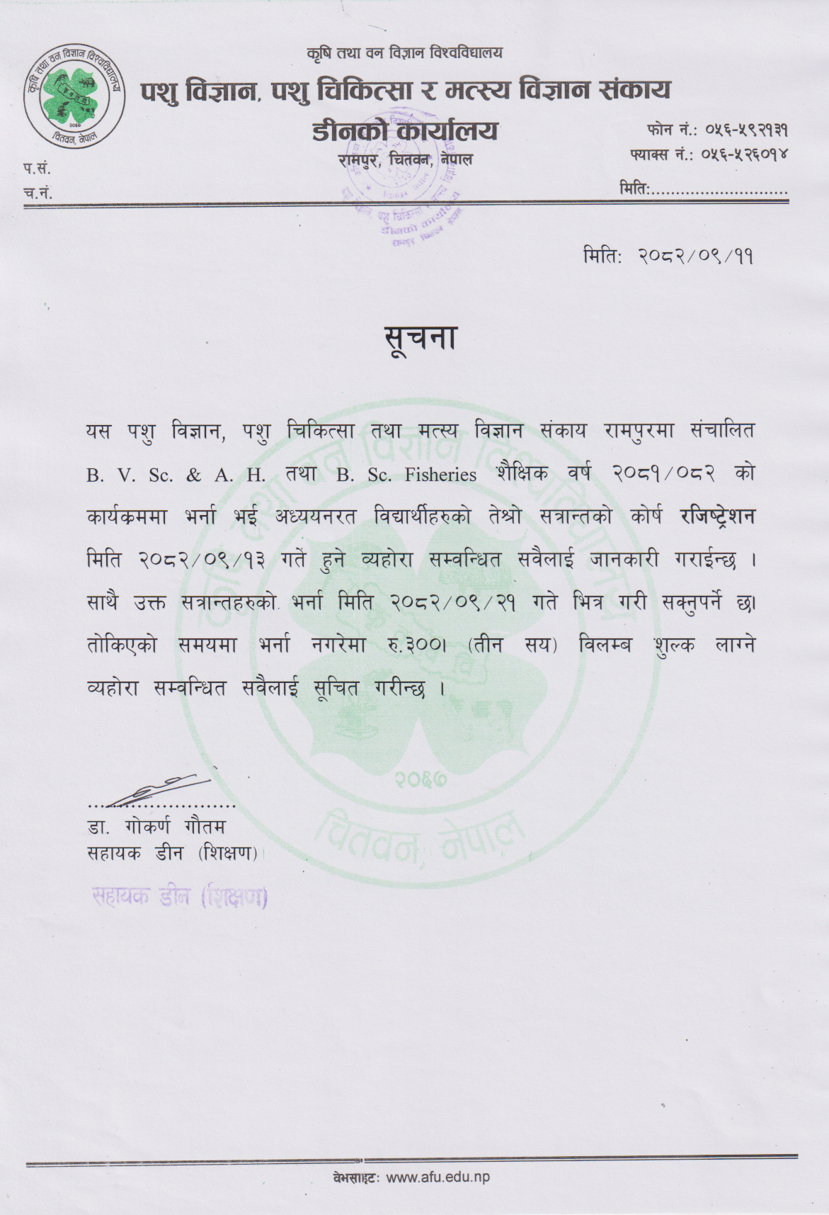 Course Registration of B.V.Sc & A.H. & B.Sc. Fisheries 3rd Semester