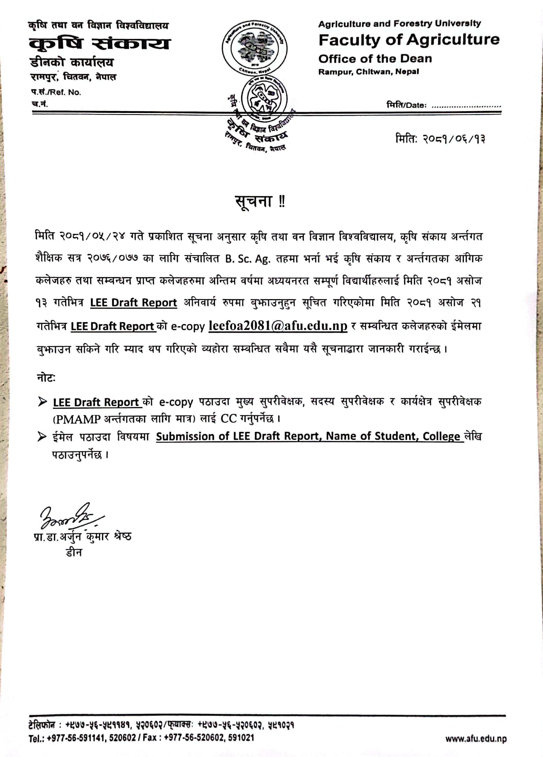 Date extension of LEE draft report for B.Sc. Ag, 8th sem-2076/077