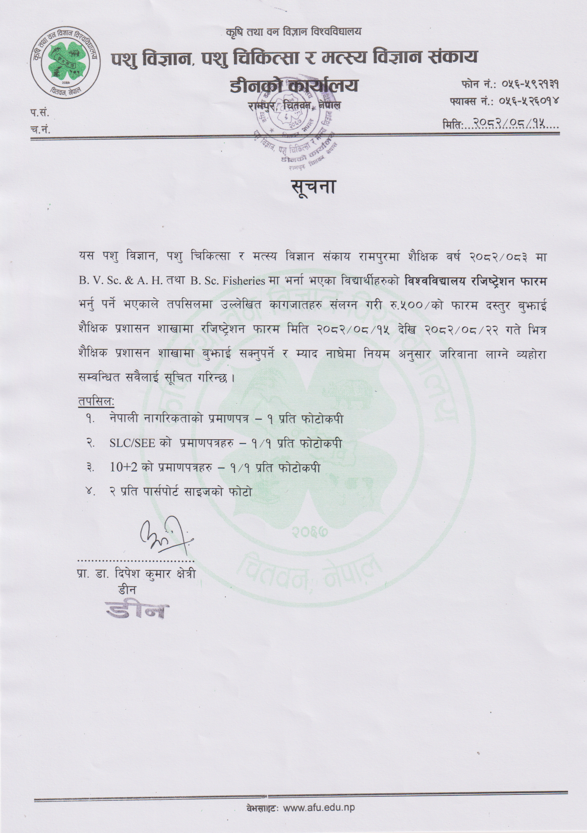 M.Sc. Forestry 2082-2084 Orientation Notice