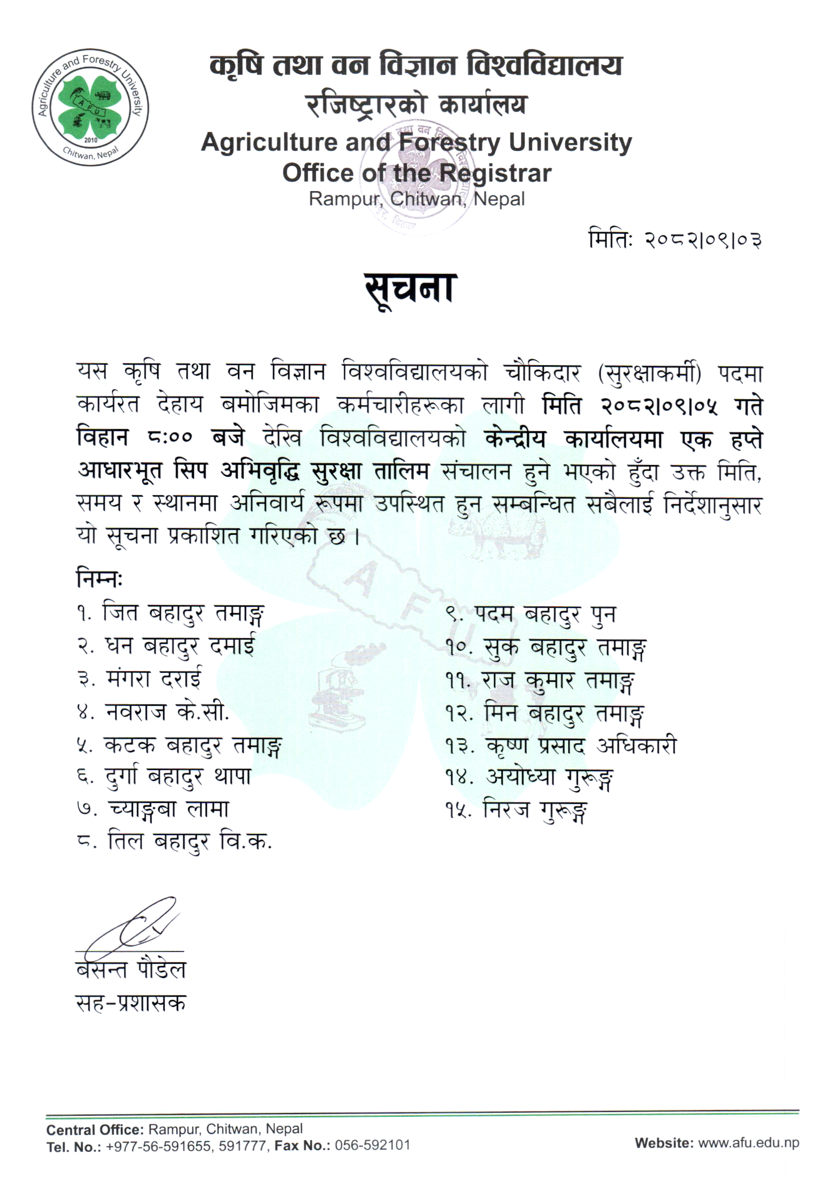M.Sc. Forestry 2082-2084 Orientation Notice