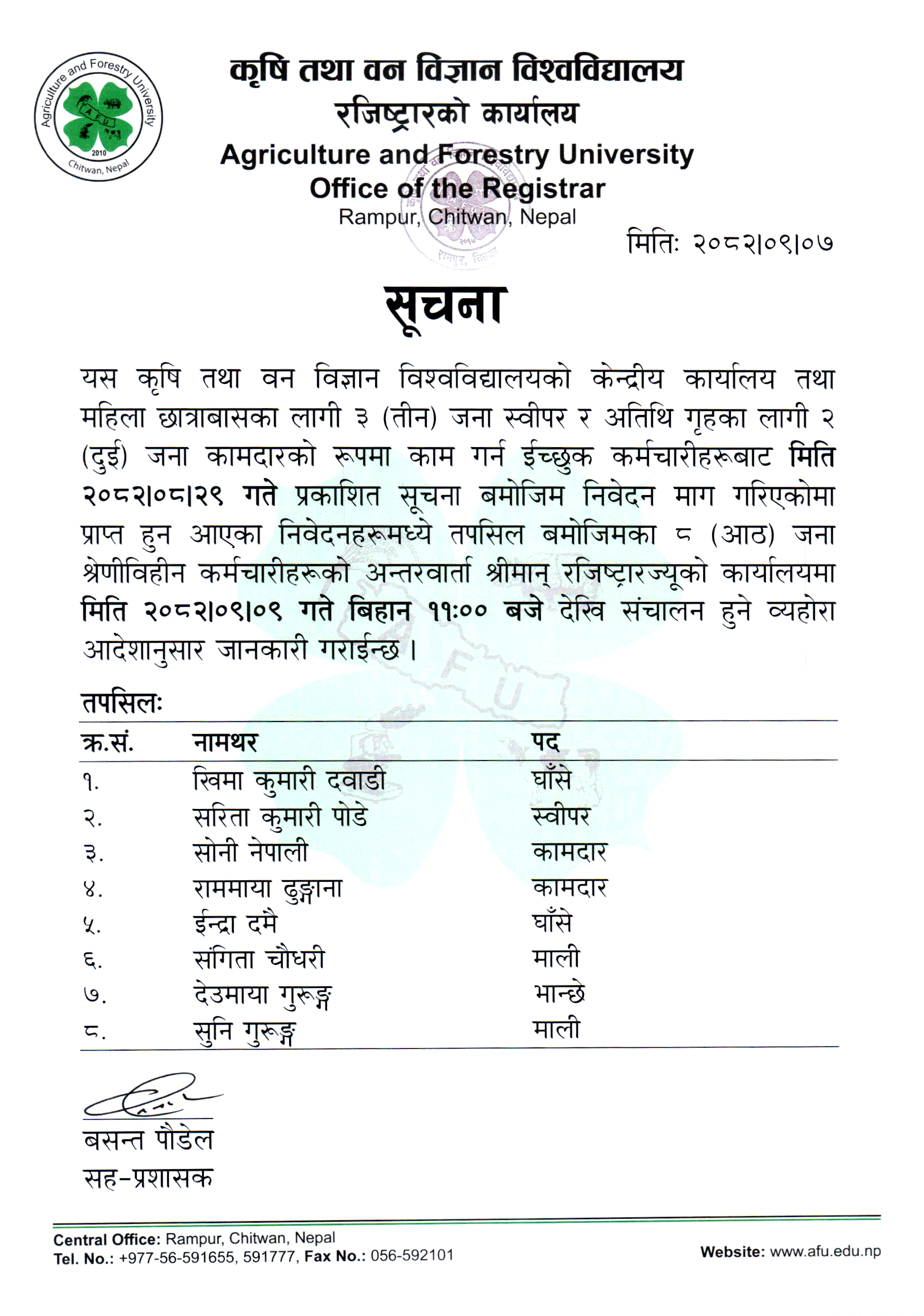M.Sc. Forestry 2082-2084 Orientation Notice