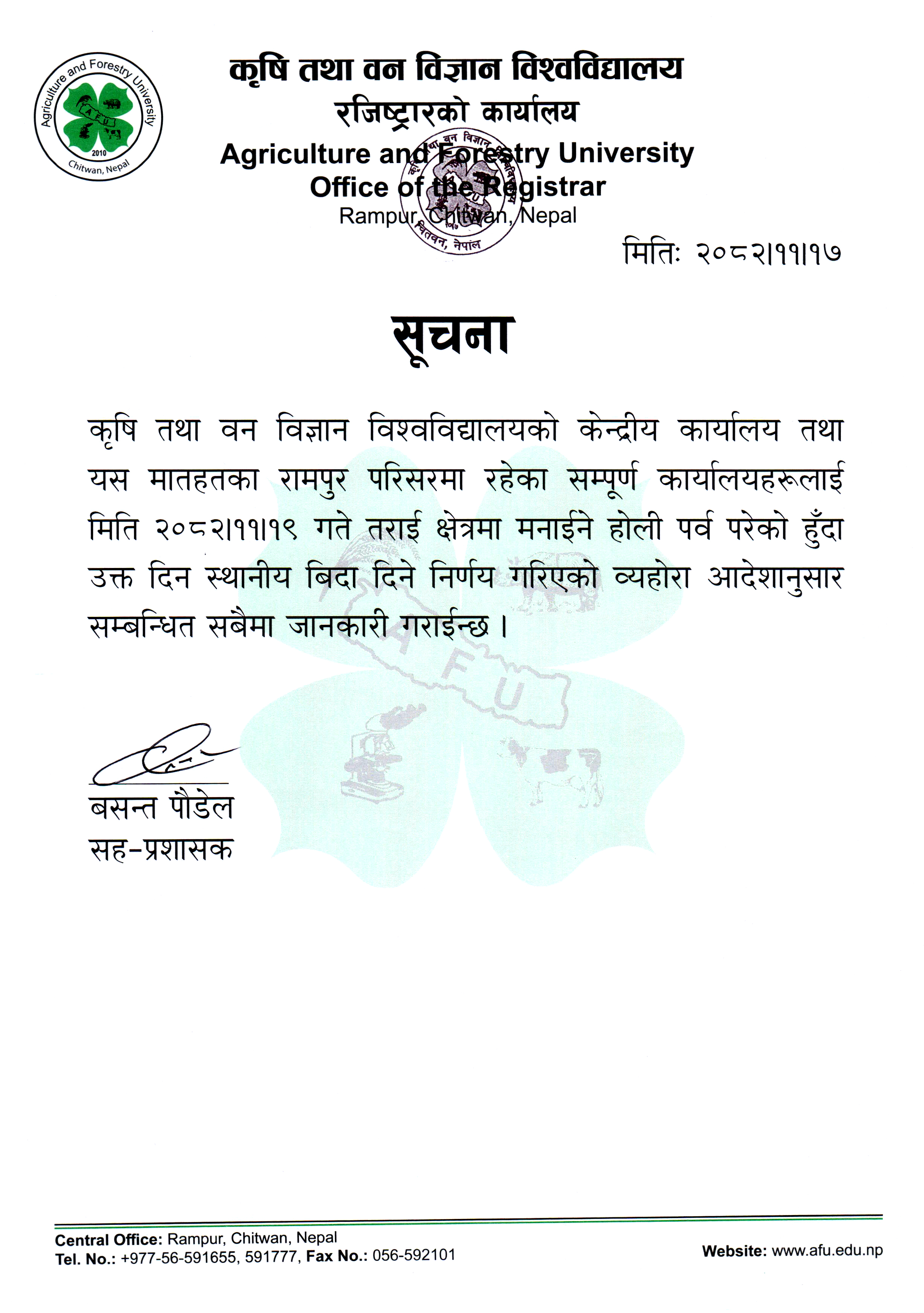 स्थानीय बिदाको सूचना