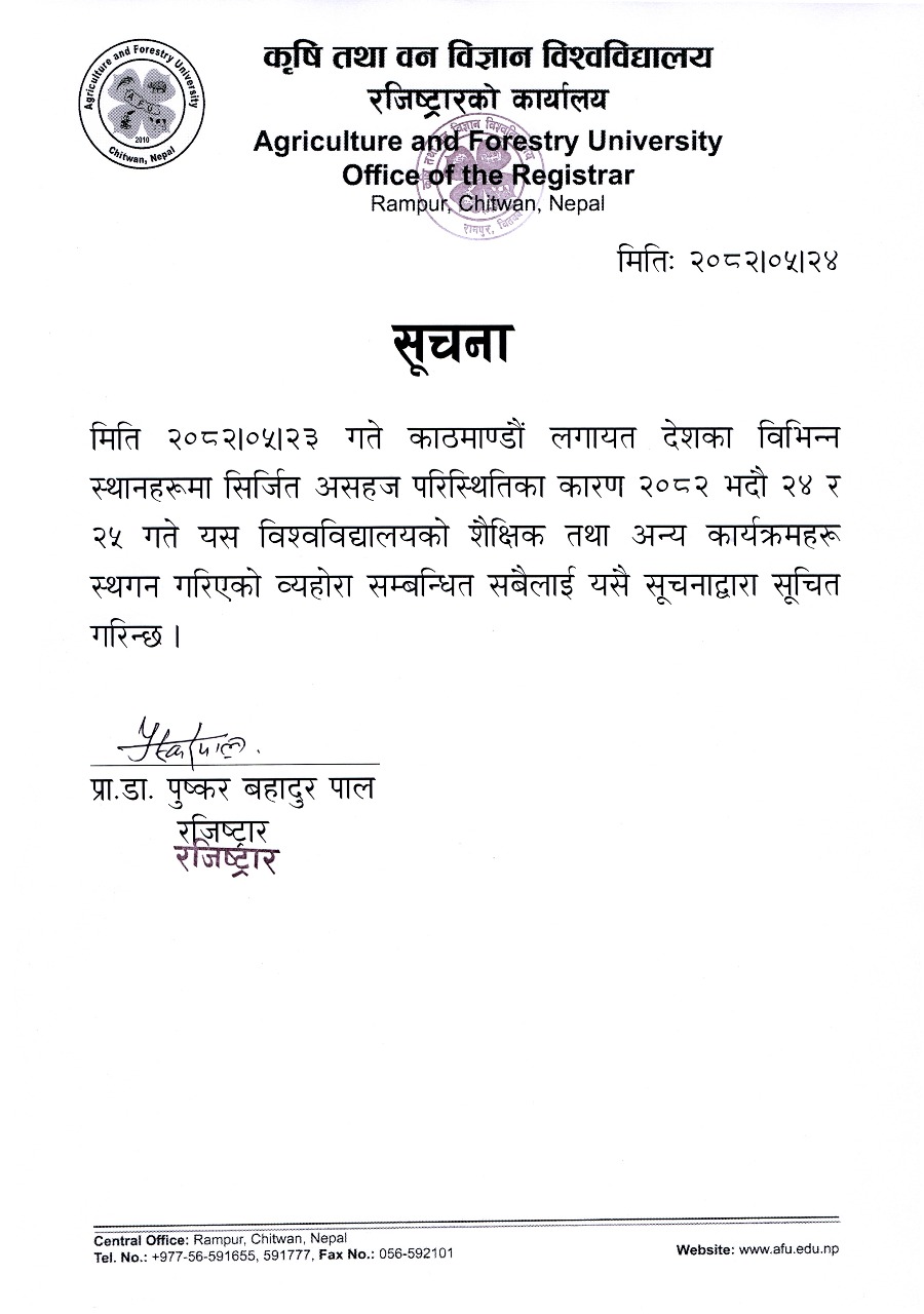 शैक्षिक तथा अन्य कार्यत्रमहरू स्थगन सम्बन्धि सूचना