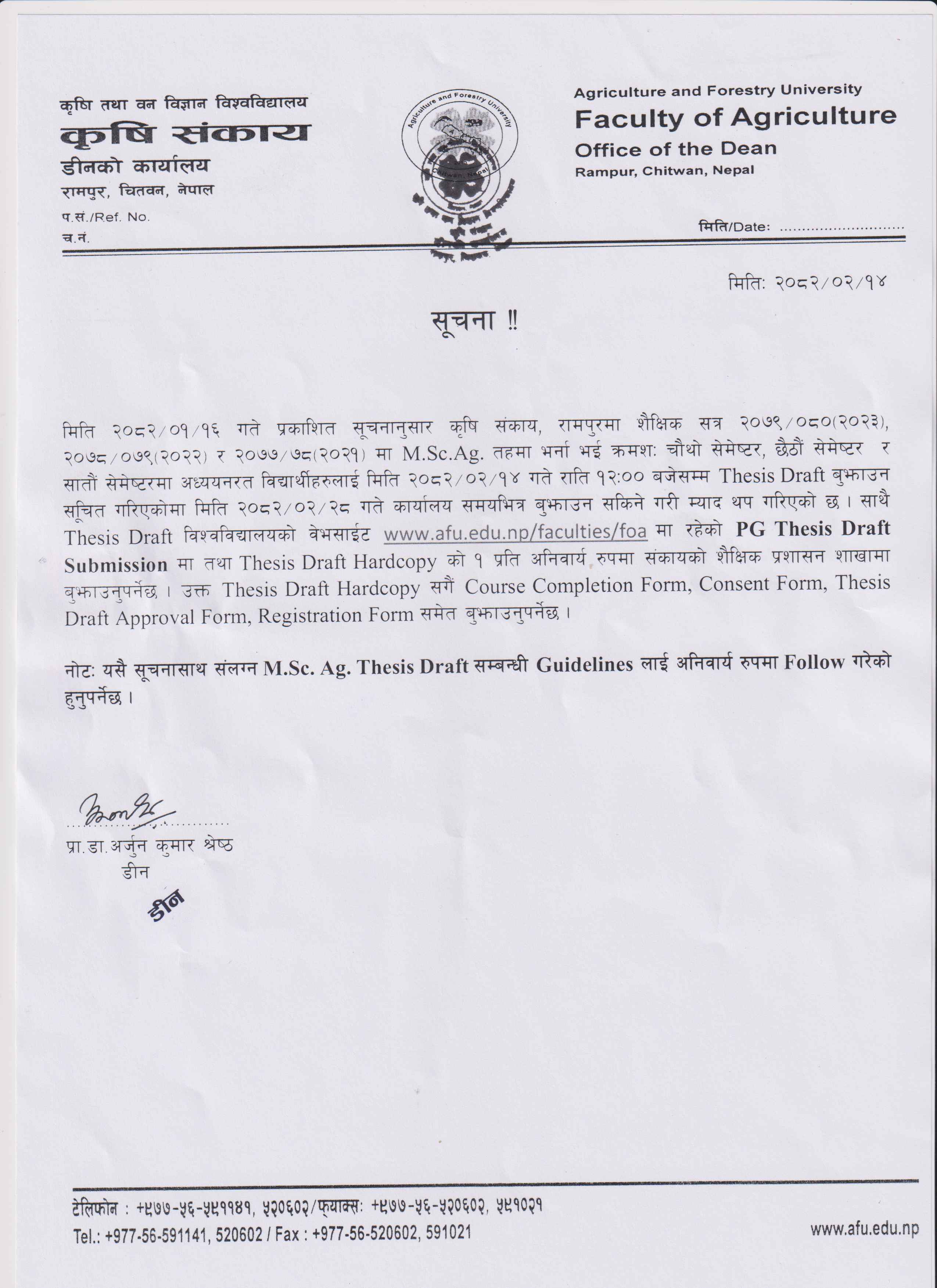 Guideline for M.Sc. Ag. Draft